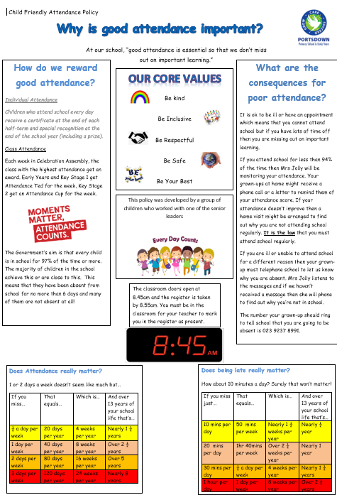 For information about attendance from Portsmouth City Council, please see: https://www.portsmoutheducationpartnership.co.uk/school-attendance/